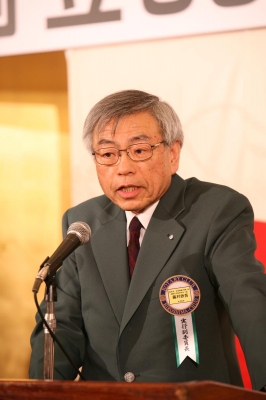 緒方俊平実行委員長が記念事業の発表を行い、橋本満会長から目録の贈呈を行いました。