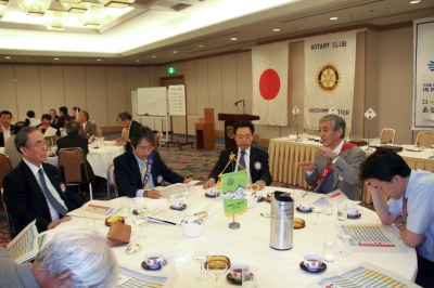 卓話時間は、クラブフォーラム「エコドリーム」について、テーブルディスカッションの結果を発表。テーブルによっては意見発表の機会がなかったようで少数意見として付け加えると「2の付く日にマイカーを公共交通に・・」では、なんで2の付く日なのか、日にちを特定したらその日は、若干でも混み合うだろう。しからば自分のNoプレートの四桁目の数字で、日付を決めて自主的に決める方法はどうだろう。これば免許も車も持たない会員の弁である。