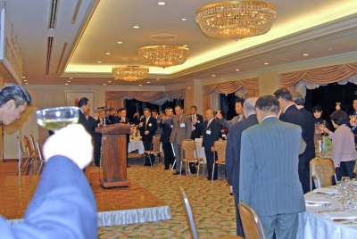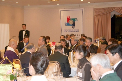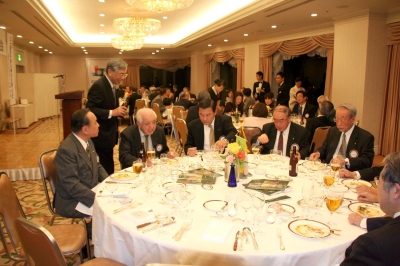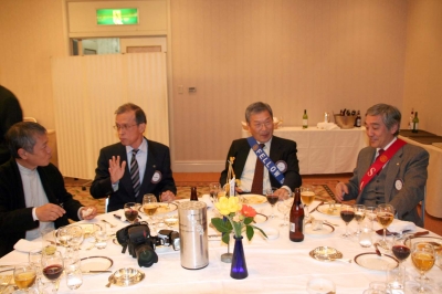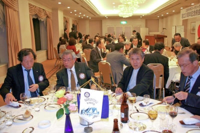 懇親会では、冨里親睦委員長進行のもと出崎会長エレクトの発生で乾杯、懇親会が開催された。