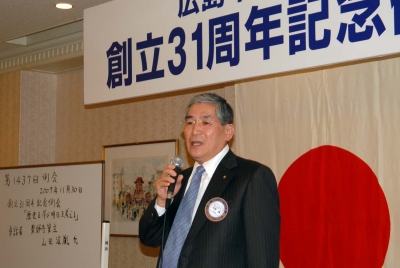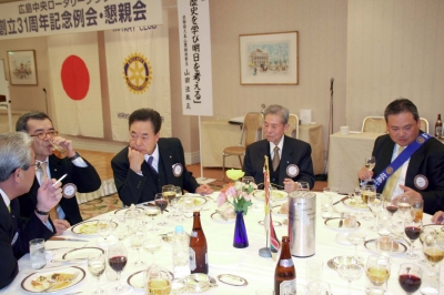 31周年創立例会は、リーガロイヤルホテル広島32階「クリスタル」で開催された。ゲストに薬師寺から山田法胤管主をお迎えし、「歴史を学び明日を考える」のテーマで講演を聴くことが出来た。管主は奈良RCのメンバーで、例会に溶け込み、親しみを感じることができたが、新幹線の時間が迫り卓話が終わると退席となったのが残念だ。