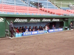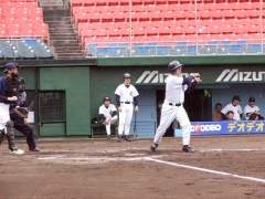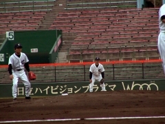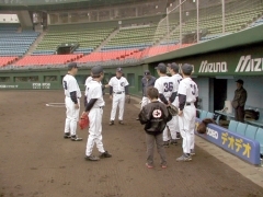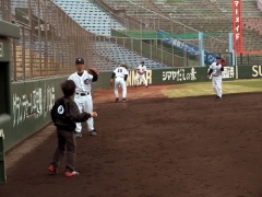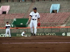 結構良いコンディションの中、第一試合は宿敵東南ロータリークラブとの因縁の組合せでした。勝つか負けるか微妙な選択を迫られる面白い試合。高重監督の再拝が見物です。