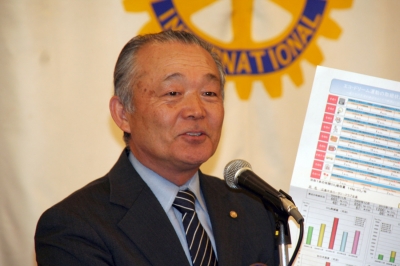 会員卓話はNo11となり、本日の卓話は徳光国弘君「「地上デジタルテレビについて」と、藤村欣吾君「病名の告知」。先週都合によりSAA、ニコニコが省略されたため、本日は祝い事がつづいた。出崎邦彦君は古稀を迎えられ御祝いされた。