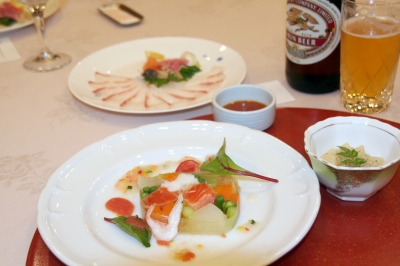 会場へ入ると、三役の席が次年度に入れ替わり理事・委員長席には、ニューフェースとベテランが配付資料に目をやりながら開会を待っている姿が印象的である。会議の様子は報告書が届き次第アップロードするとして、本日懇親会で出た料理を紹介しよう。