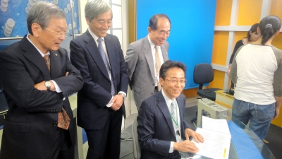 例会、会長時間の後、徳光国弘君の紹介で新人アナウンサー[泉水はる佳]さんの取材風ビデオ紹介を楽しく拝聴し、3つのグループに分かれテレビスタジオ、ラジオスタジオ、レコード・CD資料保管室、報道デスクなどを見学する事が出来た。本来、小学生が職場体験のためのコースらしく、真面目なロータリアンにはぴったりの見学コースだったようだ。最後に全員で記念写真を撮り、無事職場訪問例会を終了した。なんと出席率は普段の例会を上回ったと聞いた。