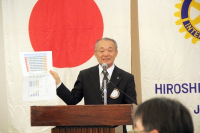 広島市が勧める「マイカー乗るまあでー」にクラブとして参加する当クラブの例会に、広島市道路交通局の立岩部長による広島市の道路事情などを聞くことが出来た。