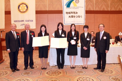 先日行われたボランティア「献血運動」「マイカー乗るまあデ-」運動に関わってくれた広島県立大学と広島女学院大学に対して感謝状を贈った。