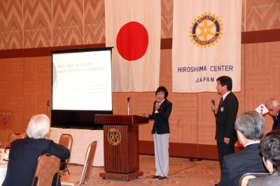 続いて本日のゲスト卓話は、カンボジア保険省から広島大額へ研修に来日しているタピロウケール氏が�田 隆君の紹介で行われた。