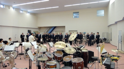 機動隊の保有する特殊車両[何故か全て車両価格が表示]が並び説明を受ける。災害時の支援車両や、キッチン車両、トイレ専用車両が目を引く。見学が終わり異動先が県警の誇る音楽隊の練習場。これだけの専用練習場は広響でも持たない恵まれた施設だ。
