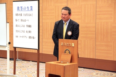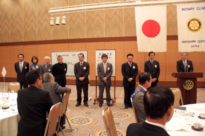 会長 河野 隆君、直前会長 藤村欣吾君、幹事 福田 浩君、会長ノミニー 土肥博雄君 副会長兼会員組織 黒瀬真一郎君、奉仕プロジェクト 徳見泰司君、R財団 杉本嘉朗君、クラブ広報 吉清有三君、クラブ管理運営 柳川寿子君、会計 村本憲康君