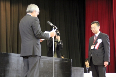 会場では、地区補助金事業として社会奉仕「清掃道具物品運搬用カート寄贈及び特別支援生徒さんとの交流会」を行った。