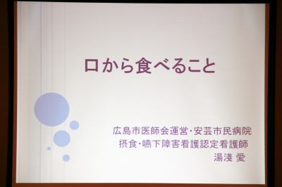 高齢者介護の卓話が続いているが、本日は安芸市民病院ま認定看護師 湯浅 愛氏の「口から食べることについて」を聞くことが出来た。介護の現場ではよりプロフェッショナルな認定看護師が必要とされているようだ。