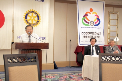本日のゲスト卓話者は元RCCアナウンサー煙石博氏を迎えて、テーマは「使おうや広島弁」。最後には作詞家として誌を提供したCD「比治山慕情」を聞かせて頂いた。
