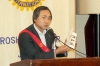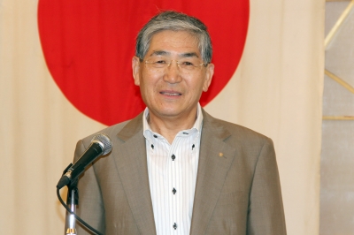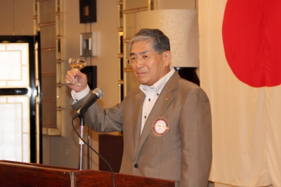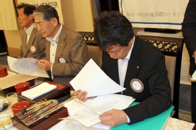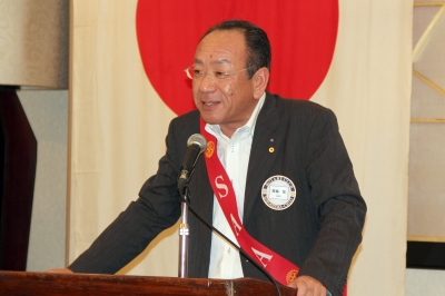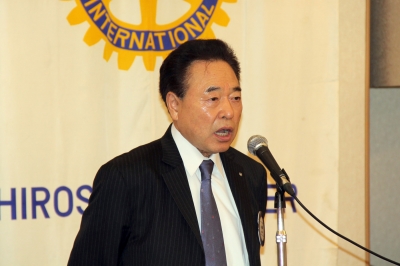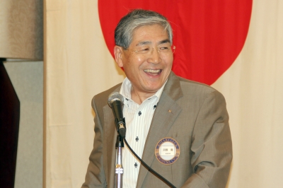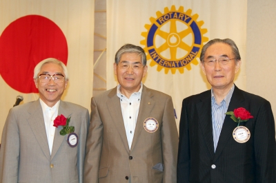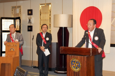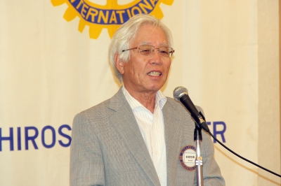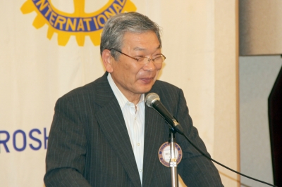 河野会長初めての例会が開催された。執行部は全員早めの準備、判る様な気がするな。緊張感漂う中で5分前のアナウンス“おっ落ち着いてなかなか良い”。新会員予定者3名と、米山奨学生盧尚逸君を迎えて河野会長の点鐘で開会した。国歌斉唱ではじまる第一例会は長く在籍していても背筋が伸びる。