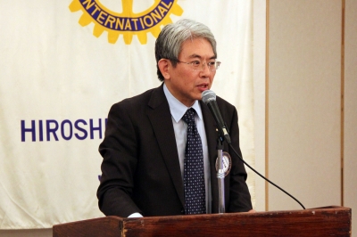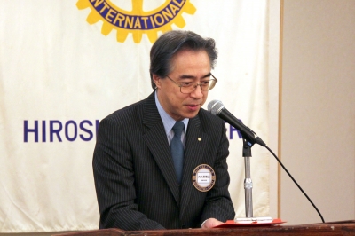 進行が慣れてきたのか、めずらしく例会がスムーズに進行した。そんな気がした。メーキャップは広島RCから当リーガロイヤルホテル広島の中林社長。誕生月など別指定席は中央テーブルが埋まるのでそう思えるのかも知れない。卓話時間では新会員の平兮一英君が、自己紹介をした。聞いていると自分と家族が大好きなんだなとスポーツマンらしい紹介でした。