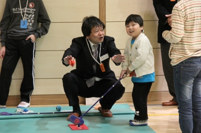早速チームに別れて、ゲームを開催。一打毎生徒より当会員が楽しむ一幕も。