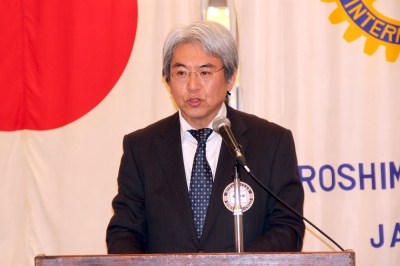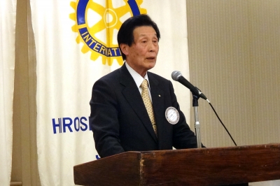 河野 隆会長が米国へ出張のため黒瀬副会長が会長時間を務めた。本日の卓話は新会員卓話(神田栄治君)が担当した