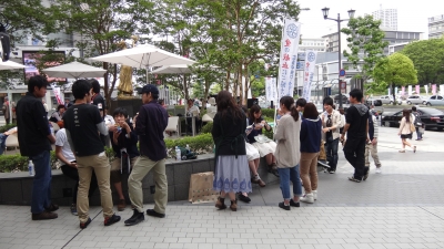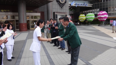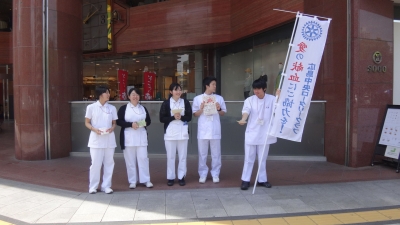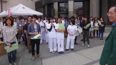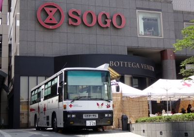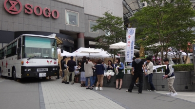今年で5回目になる献血支援活動は、昨年から場所を中区の基町クレド広場に移し、新世代奉仕として大学生を中心にした支援活動は昨年4大学が今年は7大学(広島県立大学、広島女学院大学、広島大学歯学部、広島経済大学、広島修道大学、広島工業大学、広島都市学園大学)が参加した活動となった。