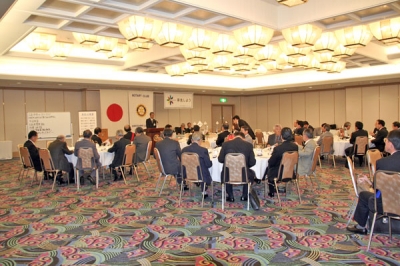 東警察署署長 田邊 誠(たなべ まこと)氏を卓話ゲストに迎え、夜型警察署の実態をお話し頂いた、ゲストには入会が決まった柳川寿子さんを迎え、メインテーブルは誕生会員で華やかさを見せた。