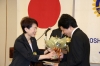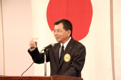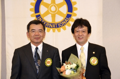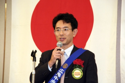 1310会の例会は、新会員:福田 浩君の入会式から始まった。社会人から弁護士になった経歴の持ち主であり、会長緒方俊平君と橋本明弦君の推薦。