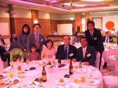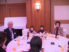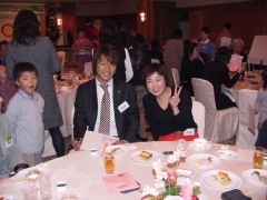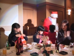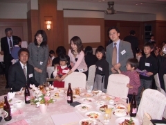ことしのクリスマス家族会は例年のリーガから場所を移して12月22日、堀江裕明会員が社長の「ホテルニューヒロデン」で会員、家族90名が出席して開かれた。ことしは暖冬予想を覆し厳しい寒さの師走になり、広島市中心部もたびたび“想定外”の大雪見舞われた。前日の21日も雪が降りしきり、当日も道路をはじめあちこちが雪模様、まさにホワイトクリスマスに。クリスマス会は会員のお孫さんをはじめ、小さいお子さんがたくさん出席されるので、欠席が増えるのではと心配したが、ひとり風邪で欠席が出たほかは予定の皆さんに顔を揃えていただいた。