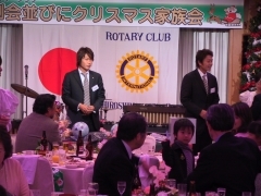 当クラブのクリスマス会の定番であるサンフレッチェ広島からのゲストは今回も高重会員のご尽力で、常務の高田豊治さん、広島の守護神、下田崇選手、修道大学在籍のプロであるDFの西河翔吾選手が出席、高田常務からは来シーズンへの決意が、怪我でリハビリ中の下田選手からは開幕戦から出場するとの力強い決意が述べられた。