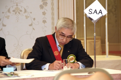 本日の卓話時間は、年次総会が開催された。2007-2008年度の会長ノミニー、理事、幹事、会計の担当が選考委員会から指名される日である。選考委員会は歴代会長経験者が中心となり、次年度会長予定者を含む7名。選考委員長は山村忠次君が緒方会長より指名され別室で選考委員会を開催した。