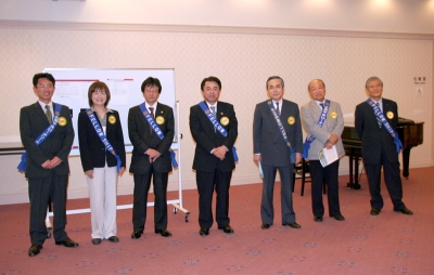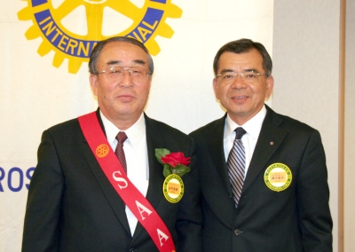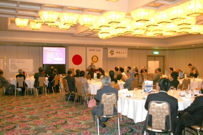 ゴールデンウイーク連休明けの5月第一例会は、多くの会員が出席した。入会予定者の黒瀬真一郎氏(広島女学院理事長)、冨里良一氏(中国博報堂)の両氏と、葛 勇君(米山奨学生、比治山大学大学院)をゲストに迎えての賑やかな例会になった。
