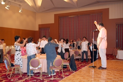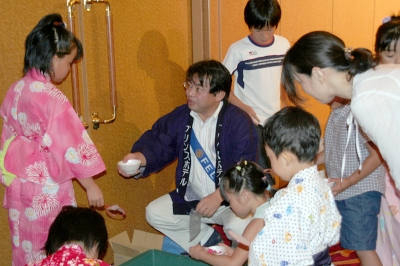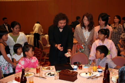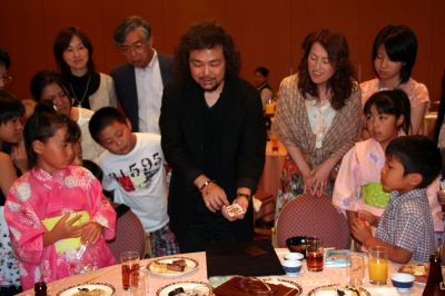 赤羽会長から「夏休みの一日を大いに楽しんでください」と歓迎の挨拶があり、懇親会が始まった。今日の料理はとても美味しいと、会員、家族から絶賛だった。一年を通して一番忙しい日に、あれだけの料理が用意されるとは、出来るとことならば橋本哲充君には、永久親睦リーダーをお願いしたいところである。