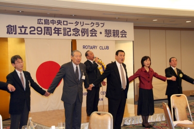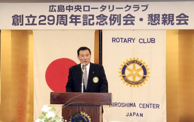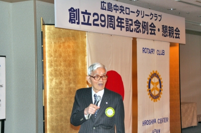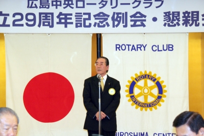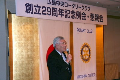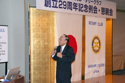 創立29周年記念例会を振り返ると、東南RC山下会長、伊藤幹事・城南RCの久笠会長、蛭子幹事、高石稔名誉会員、米山奨学生葛勇君を来賓ゲストに迎え、9組のご夫婦が出席され楽しい懇親会を開催することができました。