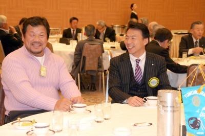 本日の卓話者は新会員徳光国弘君、ラジオ放送をテーマに録画ならぬ、録音で纏めて頂きました。ゲストの藤波辰巳氏もプロレスを通して社会奉仕をする様子と、広島公演のお願いをスピーチ。会長とのタッグがあれば、全員で応援に行くと盛り上がっていましたが・・