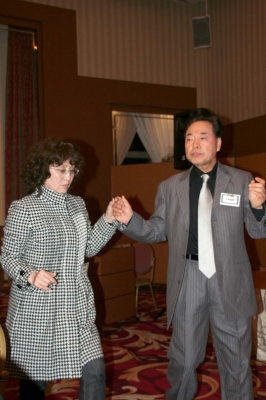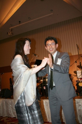 NGOオールスターズの奏でるラテンミュージックも最高潮。マンボのリズムに誘われて吉村会員のリード宜しく杉本会員はじめ急造ダンス部メンバーによる華麗なステップが始まった!
