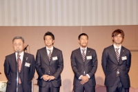 迫田会長の開会挨拶に続いて、冨里親睦委員長から本日お招きしたゲスト、サンフレッチェ広島の山崎取締役事業本部長、GK下田崇選手、MF中島浩司選手、GK原裕太郎選手をご紹介して、出崎会長エレクトの乾杯発声で宴が開いた。