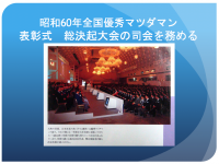 これまでの司会進行はテレビでおなじみの徳光さんや露木さんにお願いしていましたが、「手づくりの式典にしよう」との山崎社長のご指示もあり不肖私が「3時で会いましょう」で人気の山沢じゅんさんにアシスタントをお願いして司会者となり、優秀マツダマンへのインタビューもかなり突っ込んだ話を1,000人の会場のみなさんに聞いて頂き講評のうちに4年間継続しました。