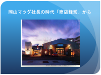 販売会社マツダオート岡山の社長としての出向の辞令が出て着任しましたが業績の良い会社には出向させてもらえず、どちらかと言えば業績が低迷し赤字基調で戦力弱小と言える状況でした。3年掛けての改善計画を立て、先ず市内の比較的良い場所に空き倉庫を借りて第展示場に改装し訪問販売から店舗販売への過渡期でもあり「商業建築」という専門誌にも掲載されるような話題性のある拠点に集客活動をして弱小のセールスマンにいつでも販売できる体制づくりそして販売効率のアップをはかりました。また各拠点もトイレ、ショールームを改装しトップセールスにも積極的に取り組みました。その結果4年後にマツダ本社の販売会社表彰では最高の賞である「経営優秀賞」を会社始まってはじめて受賞し、ヨーロッパ旅行に招待されました。このころ岡山後楽園ロータリークラブが誕生することになりチャーターメンバーとしてチャーターナイトの実行委員長も務めさせて頂きました。この行事は新しいクラブの一体化推進に大いに役立ちました。