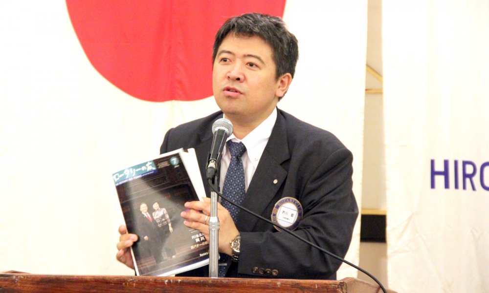 7月1日より、国際ロータリー第2710地区ガバナーのミニーに就任しました。7月1日にグランドプリンス高輪に於いて、全国ガバナー会が開催されました。2日には、ロータリー財団・地区セミナー。3・4日は、橋本代表幹事と共に在広ロータリー5名のパストガバナー表敬訪問を致しました。残り61名の表敬訪問は、今月中に終える予定です。第1回準備委員会を今月19日に開催し、ガバナー信条・事業方針・各委員会及び地区大会でのガバナー方針を定義します。そして、来年は、エレクトとして、また、1年半年後には、ガバナーとしての活動も始まります。我がクラブの全員の皆様にご支援ご協力を心よりお願い申し上げます。