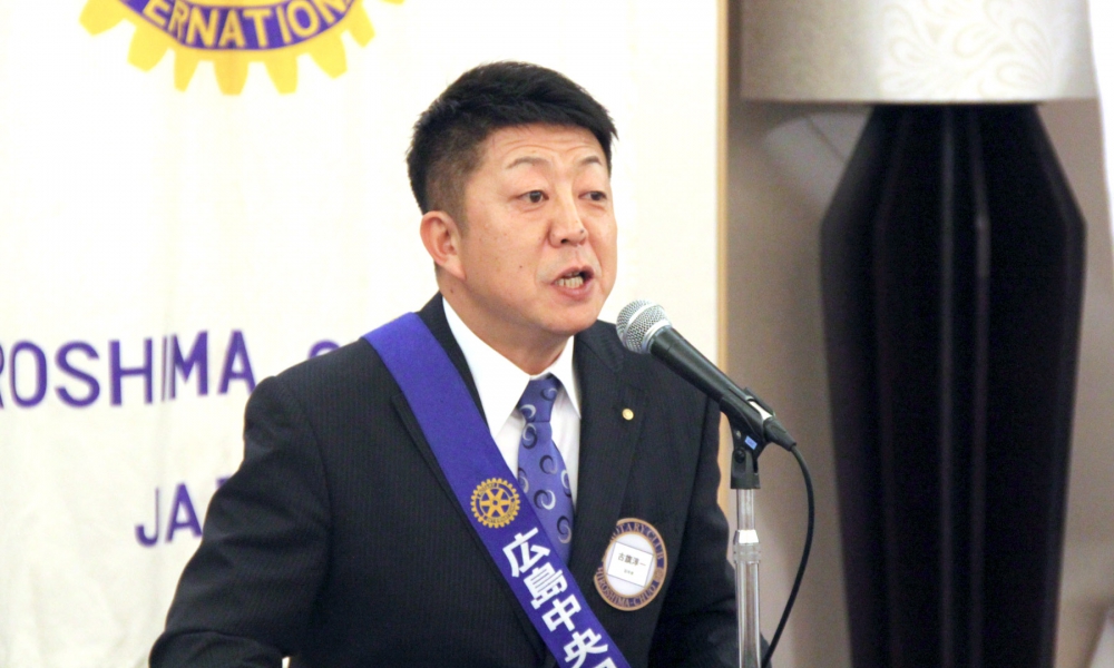 本日は、広島中央ロータリークラブ定款に基づく「クラブ総会」です。会長ノミニー、副会長、理事、幹事等を選任します。後程の総会でお諮りします。