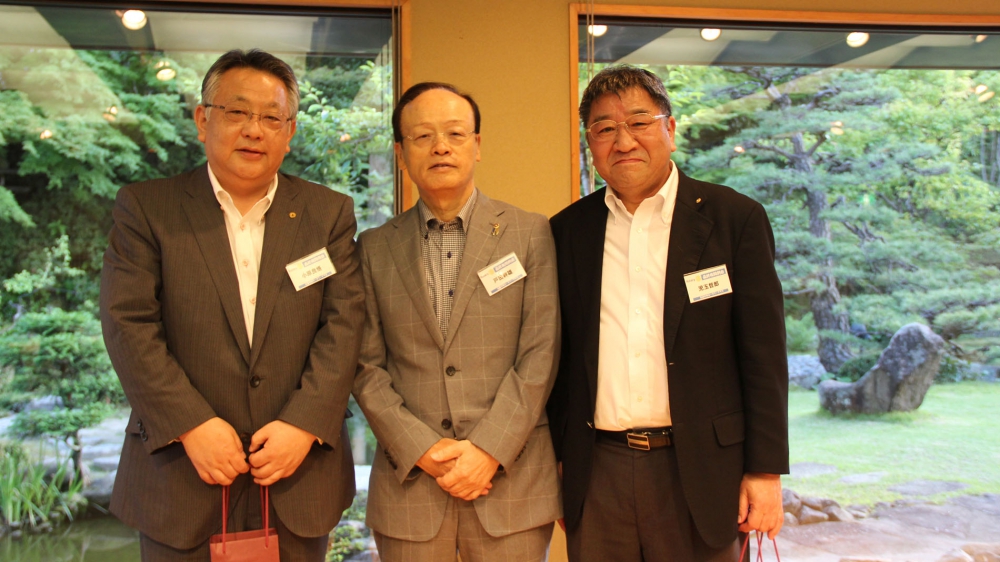梅雨の中休みでしょうか暑い1日でした。2014-15年度最終夜間例会です。村上新会長に点鐘を引き継ぐ日を迎える事が出来ました。そして私の最後の会長時間です。感慨ひとしおのものがあります。最後に私のわがままを聞いて下さい。ロータリーソングの我らの生業の作詞作曲者の人については、2月の会長時間でふれさせて頂きました。この高野、岡野コンビでふるさとや朧月よ、春の小川、もみじなど素晴らしい唱歌が出来たのは、両氏の生まれ育った地が素朴で美しい自然に恵まれていたからだとおもいます。全国的に田舎の美しい自然の風景が失われて行くことが残念です。我々日本人の心豊かさは、美しい田園風景の中から生まれていると個人的には信じています。最後に皆様がたと日本人に愛されている唱歌を歌って会長時間とさせて頂きます。