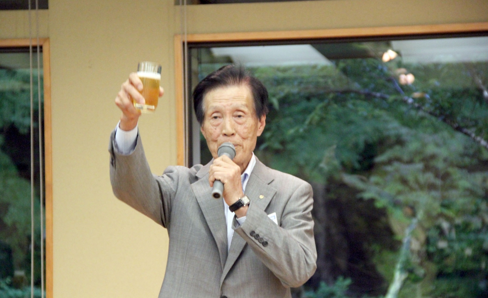 「会長はニコニコ顔で命がけ」でやってきたつもりですが、「会長も頭濁れば害鳥になる」と申します。何も心残りはありませんので、これで退任させて頂きます。