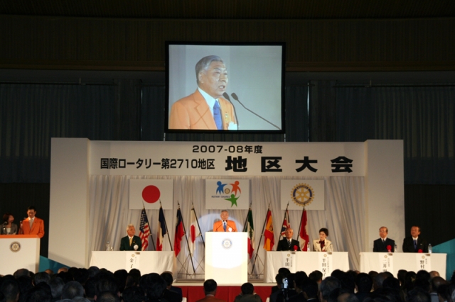 2007-08年度のRI2710地区大会は山口県萩市で開催された。広地の中央RCから15名が参加した。前日から入った会員は夜の萩を堪能したと思われるがそのニュースは届いていない。当日参加の会員は車と新幹線に別れたが、小倉まで行ってしまった新幹線組もいたようだ。