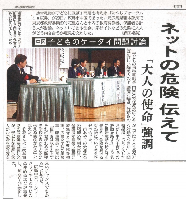 30周年記念事業の1つ記念講演、フォーラムの内容が広報委員会の報告より、中国新聞に掲載されたという情報でその記事を探したところ、迫田理事から提供頂きました。