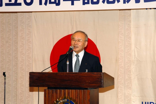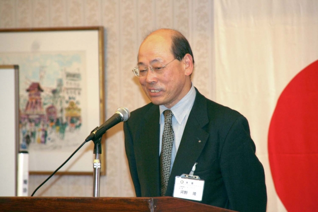 広島城南RC会長の河野でございます。広島中央ロータリークラブの迫田会長・河野副会長ならびに会員の皆様、創立31周年をお迎えになられましたこと誠におめでとうございます。また、本日子クラブの私どもをお招きいただきありがとうございます。私たち城南ロータリークラブも今年度で15周年を迎えますが、広島中央RCさんが創立15年目余りで我々クラブを誕生されたことを思うと城南RCではまだまだ力が備わっておりません。今年度もやっと4名の増強ができましたが、ロータリーが何かを充分に理解していない42名でございます。今後も今までと変わらないご指導・ご鞭撻をお願い致します。