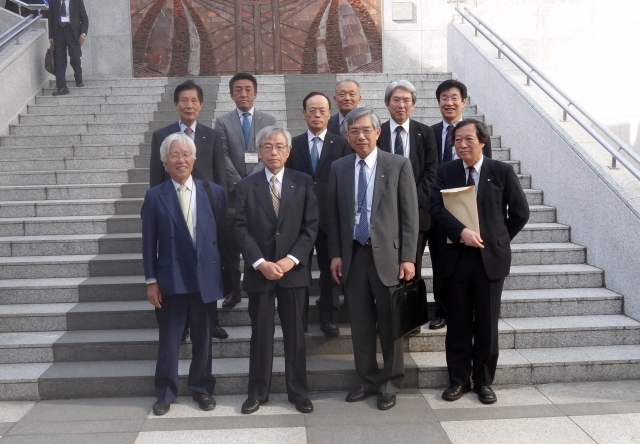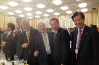 左から 土肥博雄副会長 中川日出男事務局長 出崎邦彦会長 徳見泰司幹事