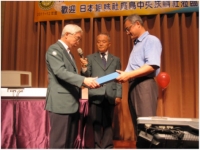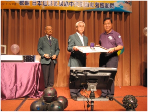 中秋の会は台中西RCの恒例行事。家族の方々も参加される総勢約120人の盛大なパーティー。この会の最初に今回の訪問目的である日本赤十字社からの感謝状贈呈式を執り行っていただいた。