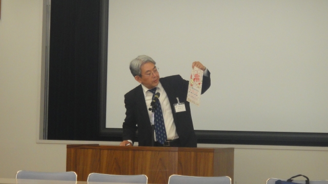 広島市道路交通局、都市交通部交通対策課 谷脇課長より「マイカー乗るまぁデー」について40分間、資料とプロジェクターによる説明を受けた。