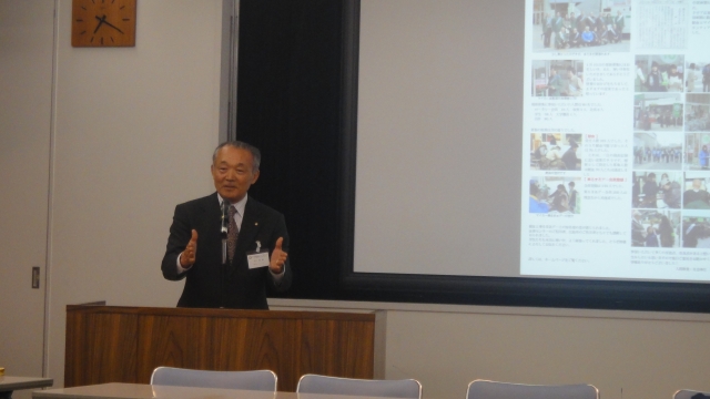 最後に奉仕プロジェクト前原理事から、本日の閉会の挨拶をして勉強会を閉会した。テーマ「ボランティアの活動」の意義と問題点を知ることが出来た。ロータリーは社会貢献をする団体として皆さんと活動したいと思います。ただ年齢的に問題がありますので、若い皆様宜しくお願い致します。と締めくくり集合写真を撮った。