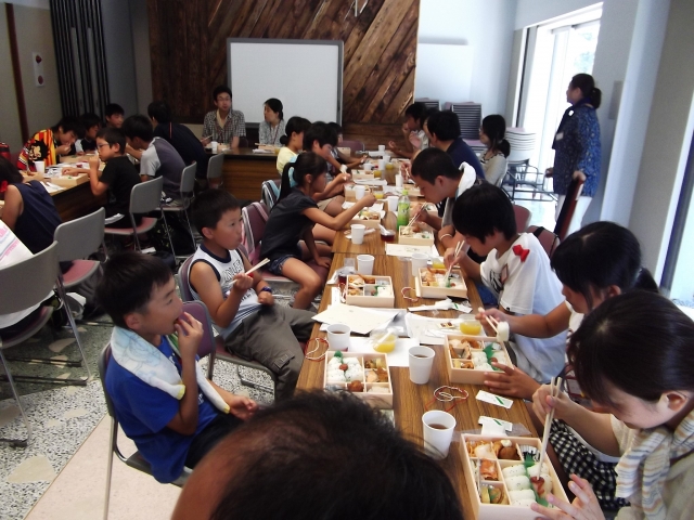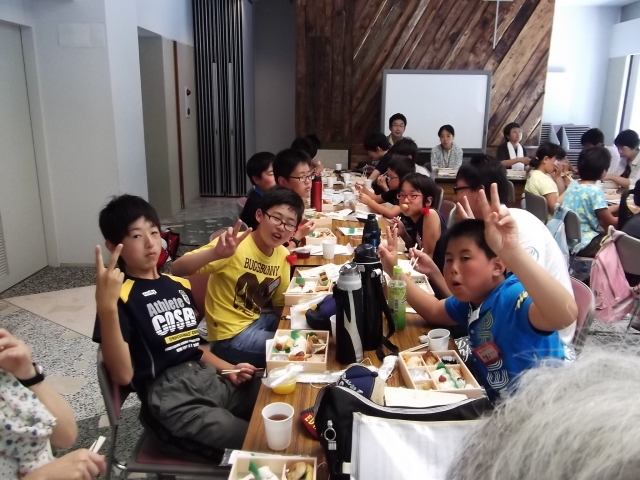昼は広島中央ロータリークラブが用意した弁当をみんなで楽しく食べました。