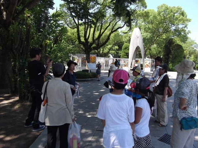 広島中央ロータリーからは奉仕プロジェクト徳見理事、前原委員長、村上委員委員長、嶋本副委員長夫妻と私吉川夫婦で慰霊碑めぐり、資料館めぐりの見守り役をしました。子供たちは、慰霊碑の説明ボランティアや数人の見守りボランティアの方々に案内をしてもらいながら平和学習をしました。