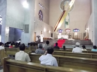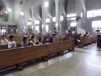 7月29日(日)福島の子供たち20名と引率者数名は7時30分大島の宿泊所を出発し、9時30分広島平和学習の最初の場所、世界平和記念聖堂に到着しました。