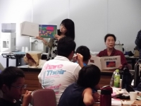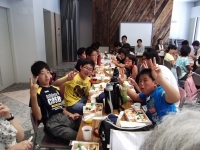 昼食後、嶋本会員奥様の友達で、広島市内安佐北区在住の絵本作家森本マリアさんからご本人の絵本を見ながら原爆投下当日の話や昔の田舎の話を聞きました。子供たちから原爆のことや田舎暮らしの質問が出て、いい学習になりました。