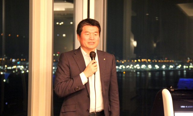 会場を22回階に移し、古旗親睦委員長の進行、村上会長エレクトによる発声で乾杯、懇親会が始まった。